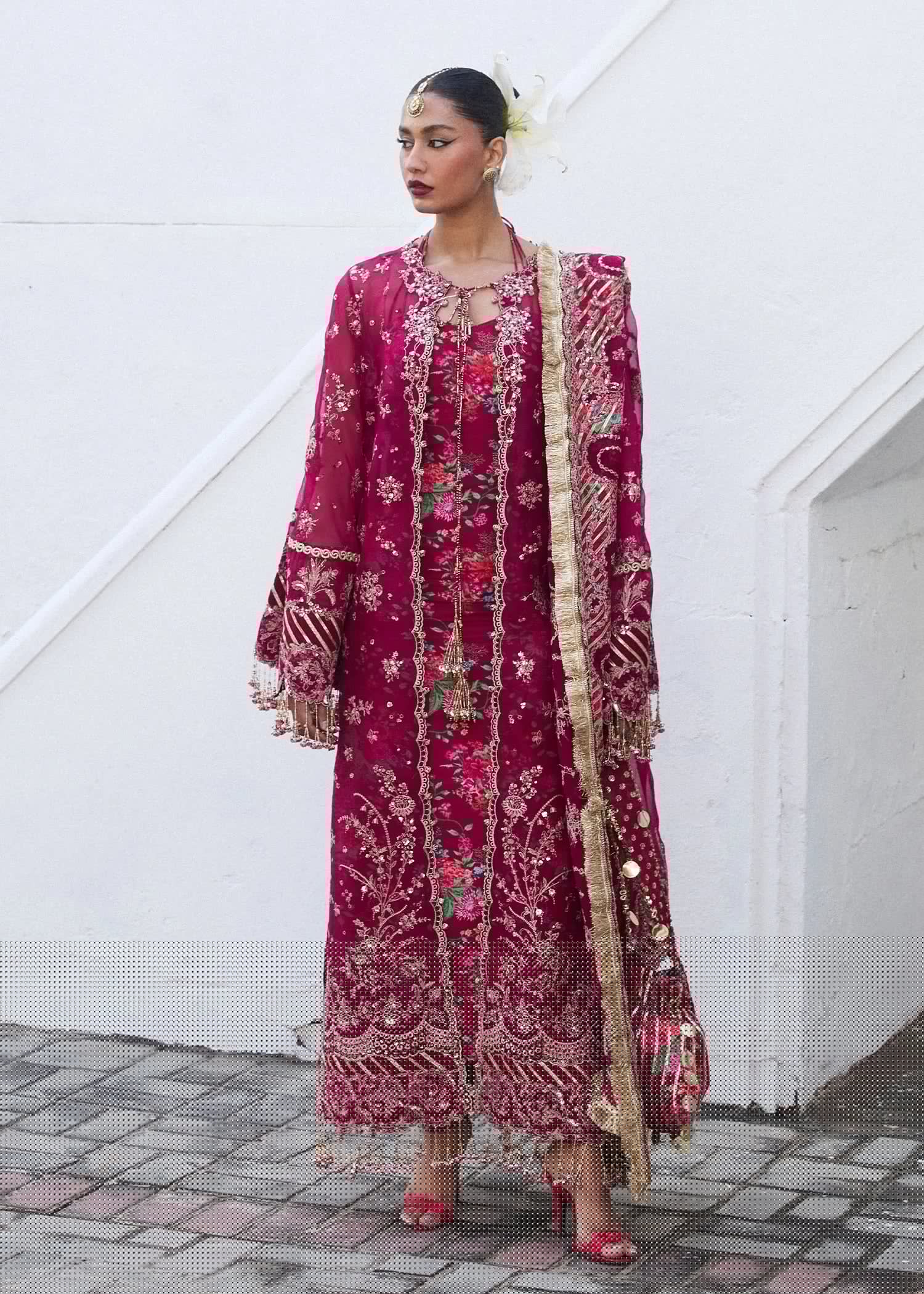 It is an embroidered organza jacket, which adds a touch of elegance and sophistication. The trousers are floral printed choridar style, which is perfect for a traditional and elegant look. The dupatta features embroidered four side borders, adding a beautiful finishing touch. This ensemble is definitely going to make you stand out on any occasion.