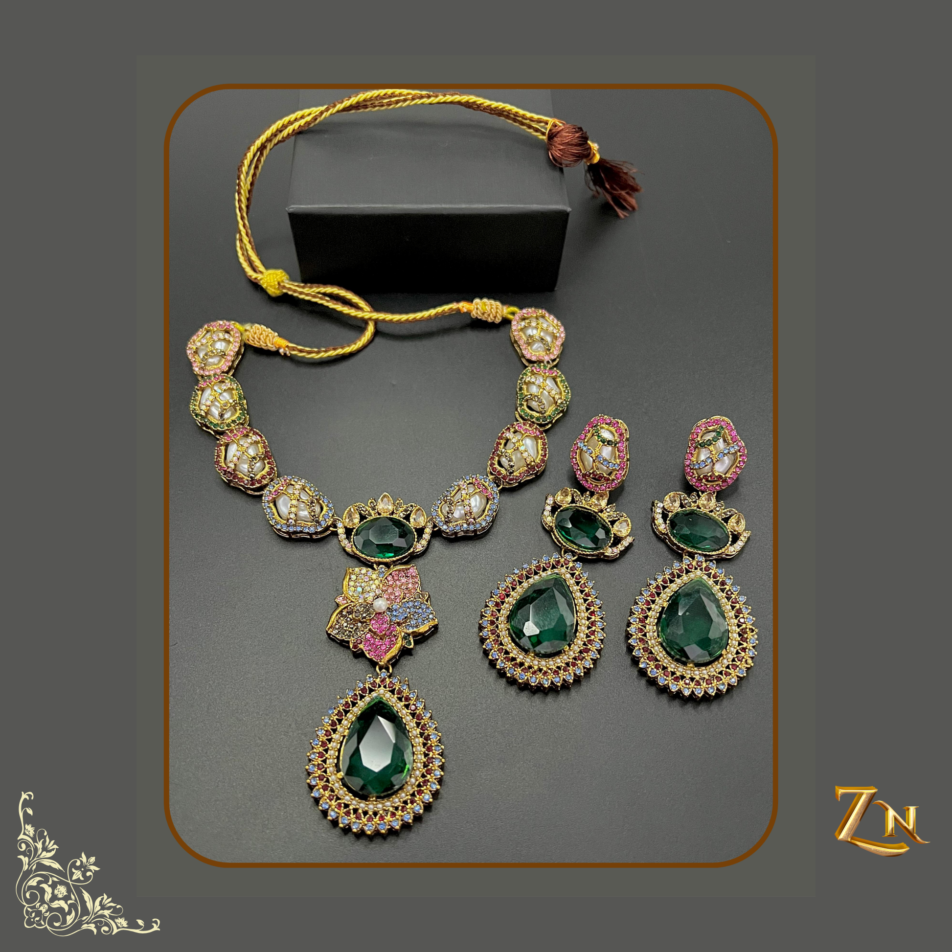 Elevate your style with our stunning designer necklace set, available in 4 colors - . Intricately designed with sparkling stones, perfect for any occasion