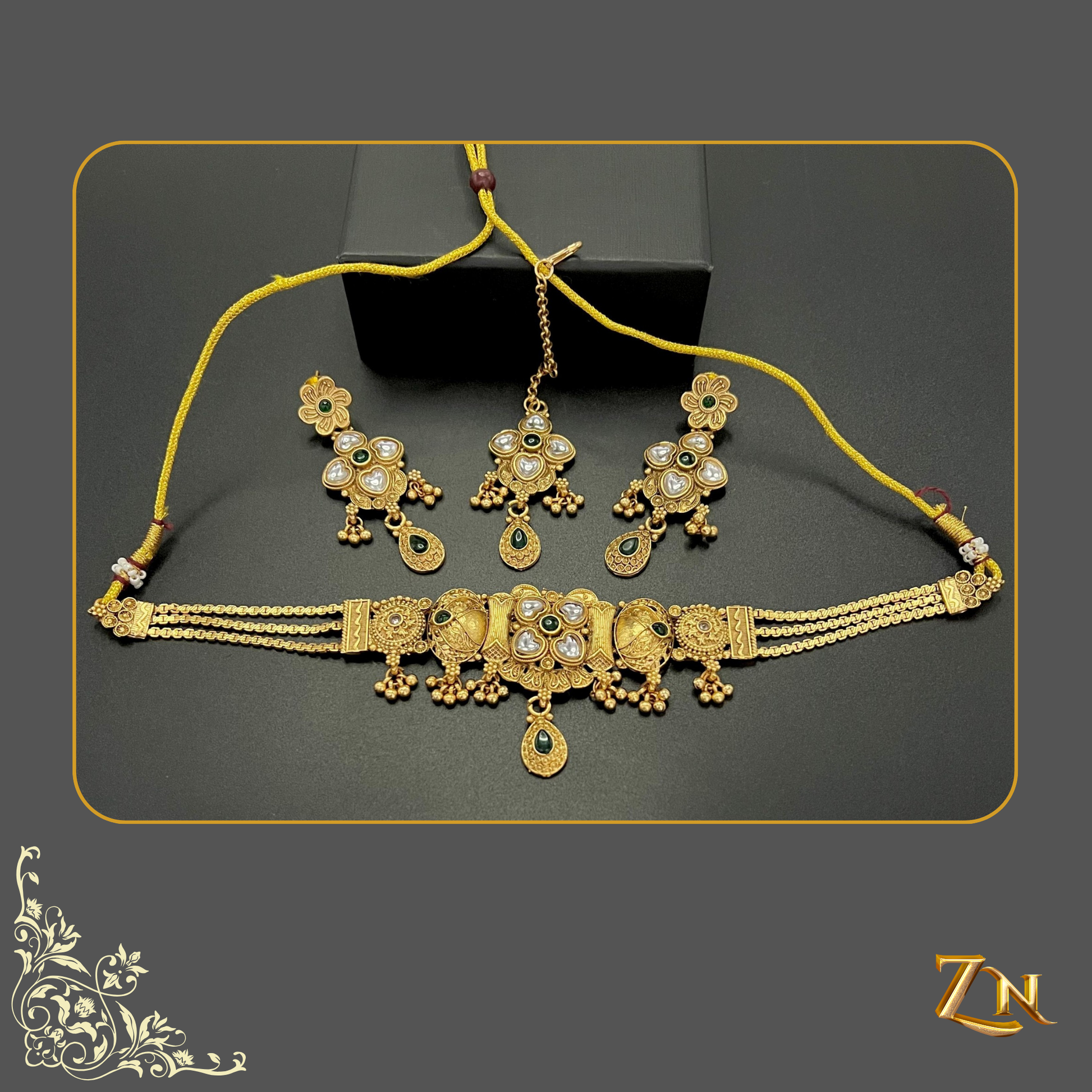 Choker, earrings, teeka divine,